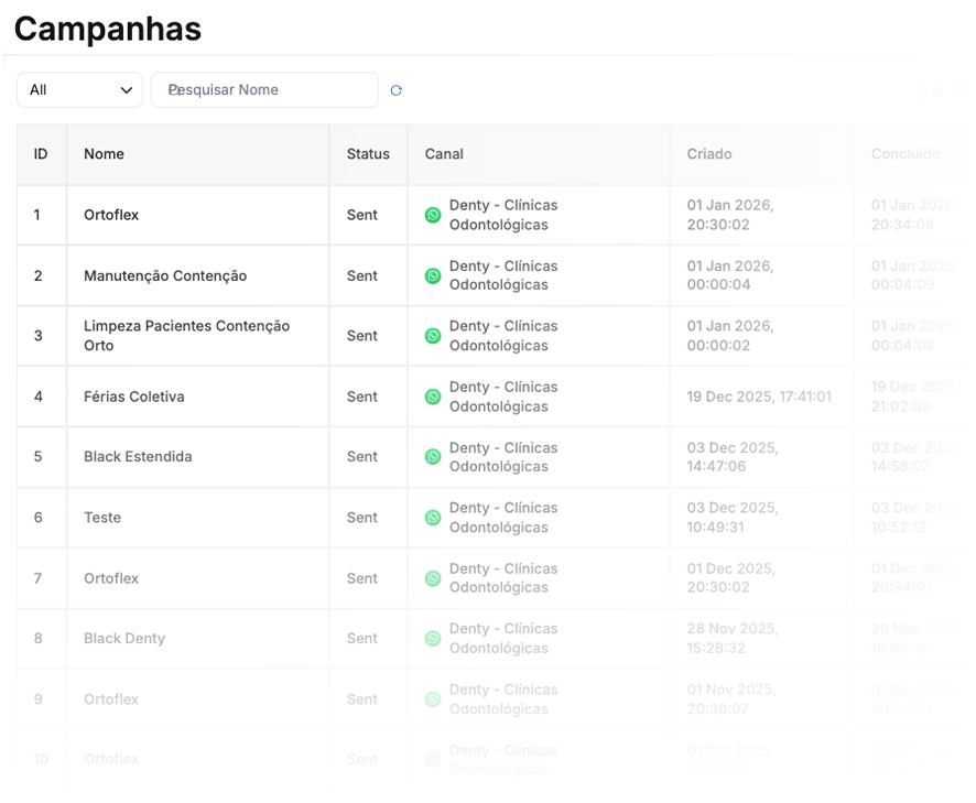 Lista de campanhas disparadas