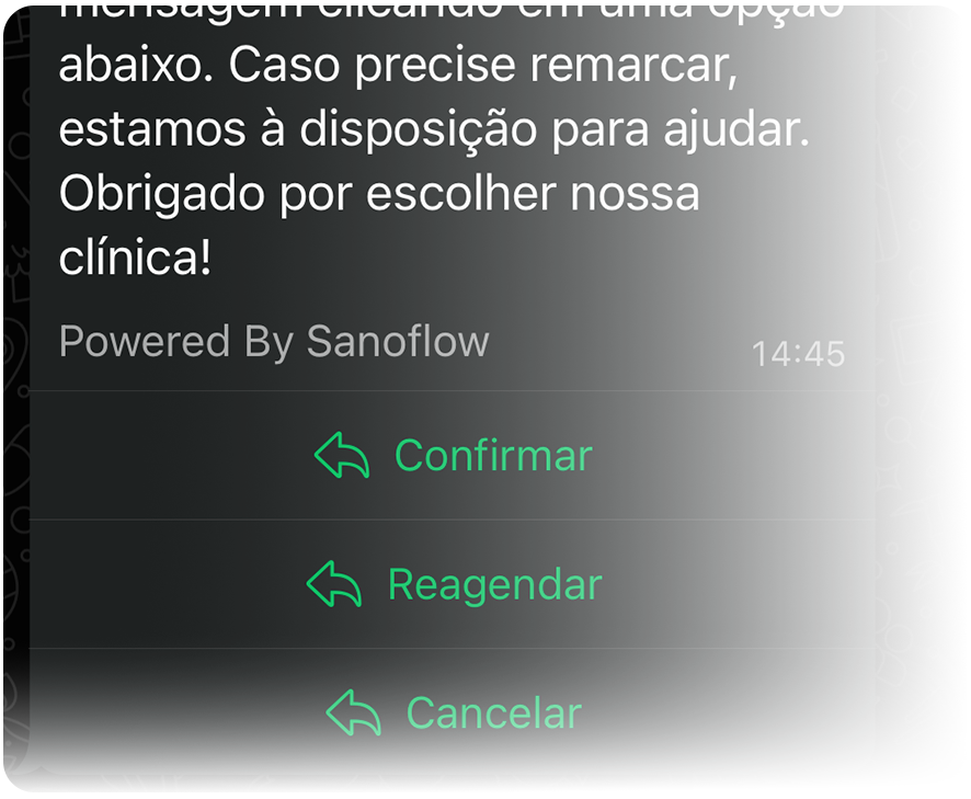 Automatize lembretes de consulta, check-ups e retornos para reduzir faltas, melhorar a organização da agenda e garantir mais comparecimento dos pacientes.