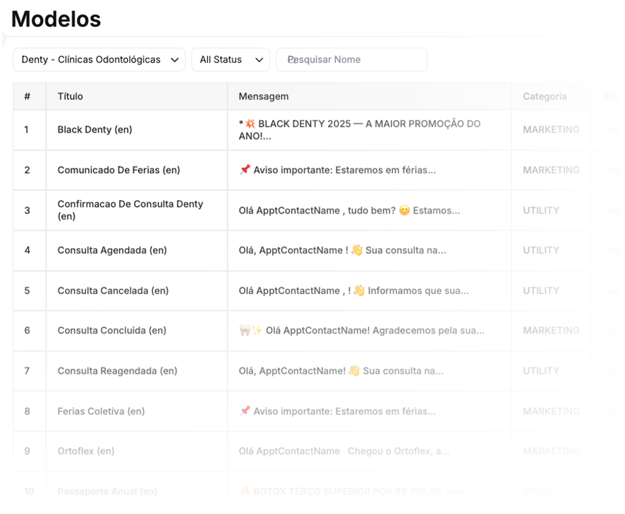 Mensagens padronizadas, aprovadas e prontas para escalar.